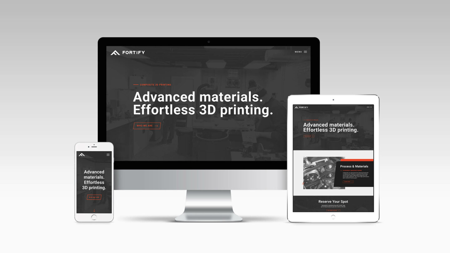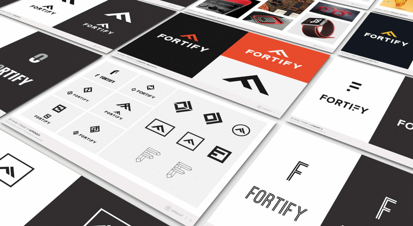 Sprout paired with 3D Fortify, a Boston-based, carbon fiber, 3D Printing startup to create an iconic visual language for their brand and website. Fortify’s innovative 3D printing process produces optimized carbon fiber prints, stronger than any other 3D printing materials currently available. We drew from that notion of strength and stability during the branding process, ultimately creating a triangular mark (as triangles are the strongest shape) that is also a rotated capital F, for Fortify. The angles of the triangle are a visual element that can be seen throughout the website and other collateral.